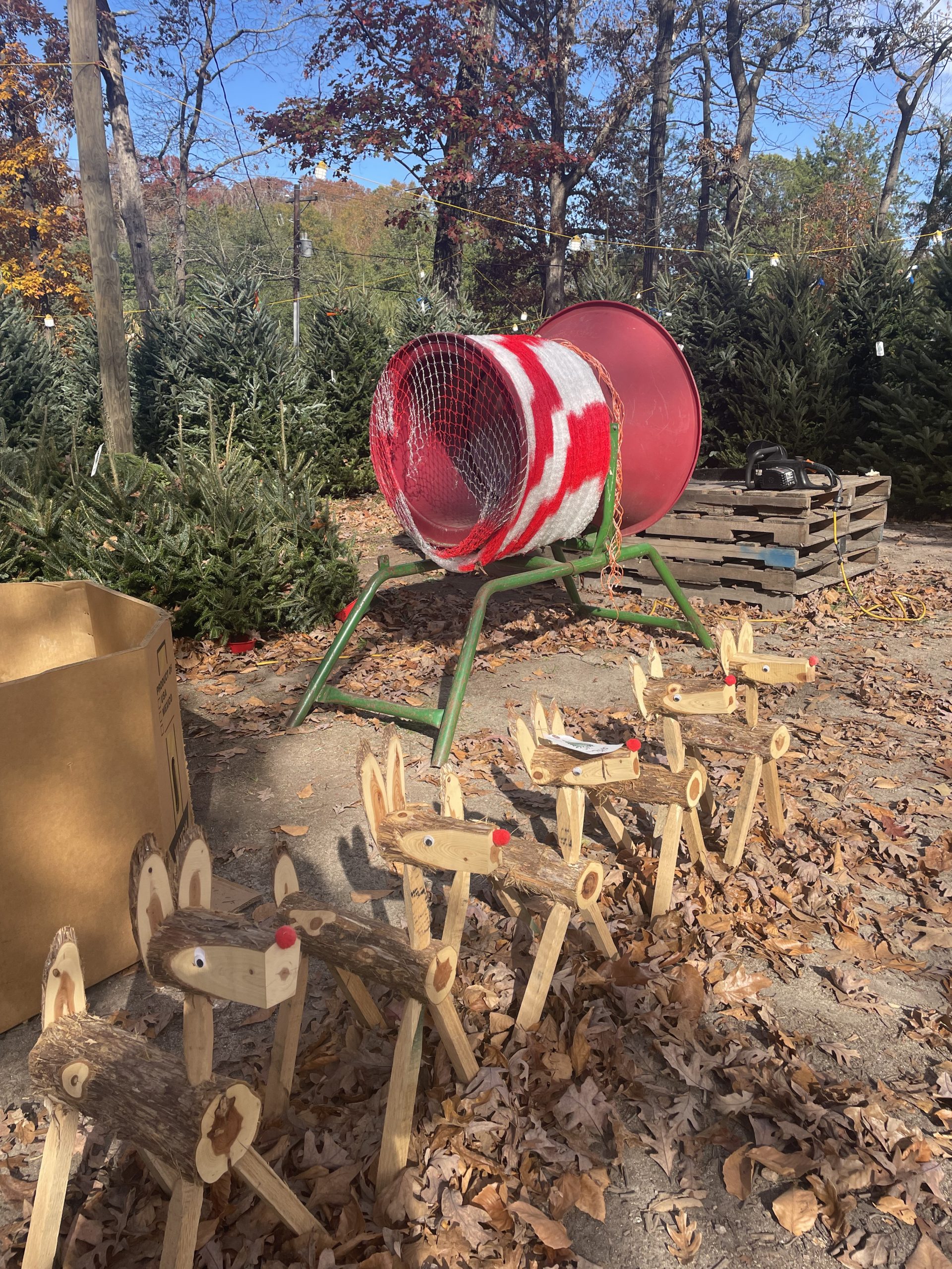 Even though trees are the star of the season, kids can still enjoy the children’s play area with climbing tires, tire swings and slides.